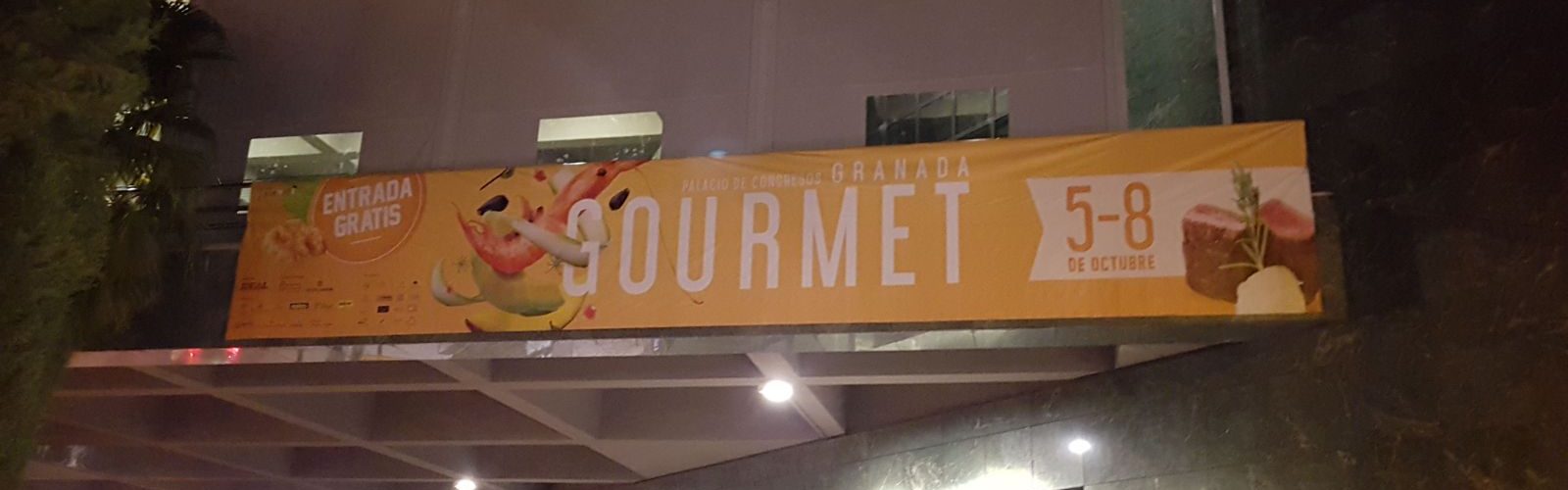 Impresión y montaje de pancartas, tótems y vinilos para stands en el Granada Gourmet. Palacio de Congresos de Granada.